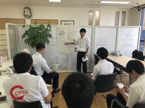 マナー研修、物件の内覧、店頭対応(お出迎え、お見送り、お茶出し)、家主提案プレゼン資料作成&発表(リフォーム等提案)を行っていただきました。